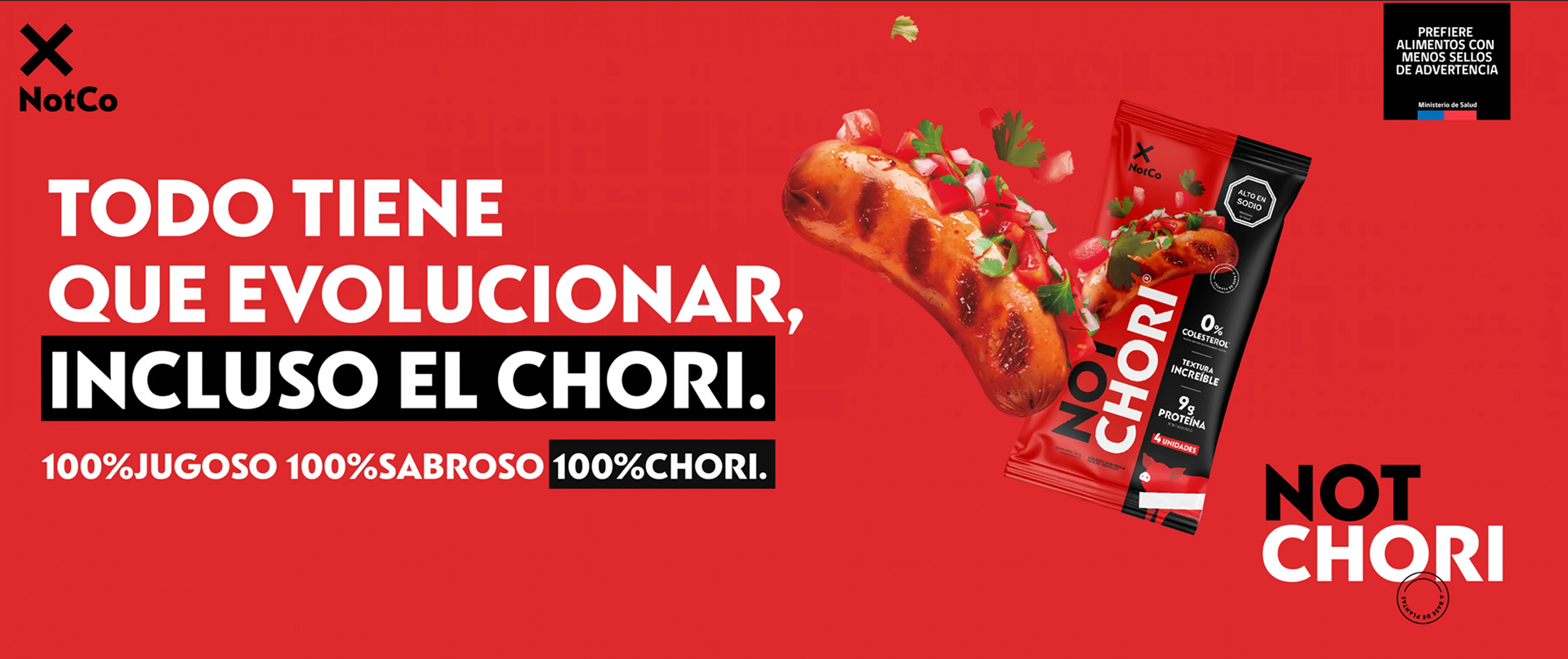 NotChori is a new product category developed by NotCo, introducing a plant-based alternative to chorizo — one of the most iconic staples in Chilean barbecues.