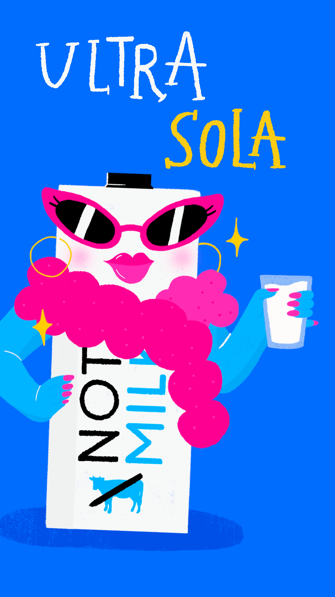 For this social media reel, I illustrated a playful narrative inspired by Ultra Sola by Paloma Mami. Through bold characters, expressive color, and dynamic compositions, the piece celebrates the confident attitude behind NotMilk.