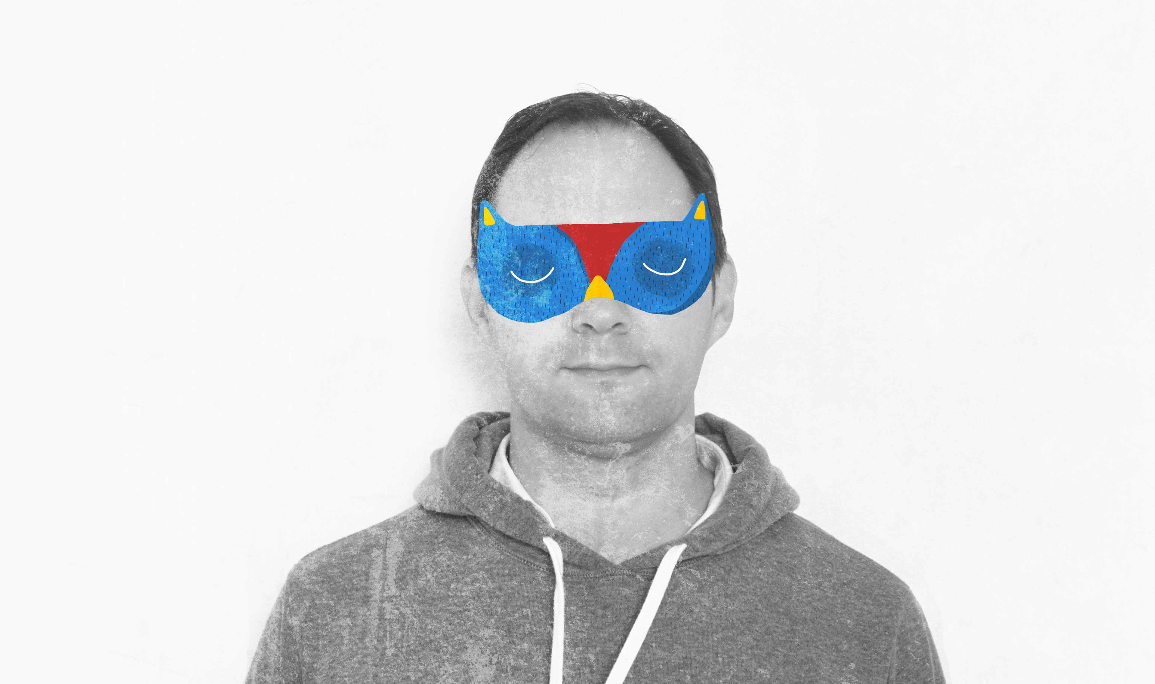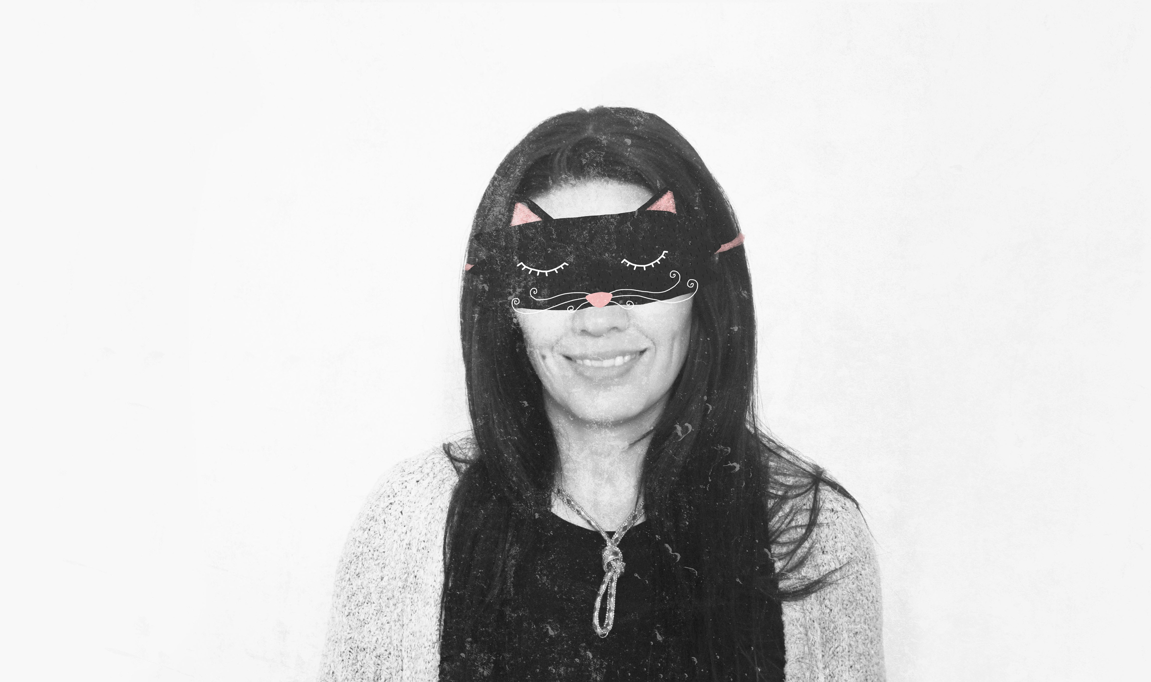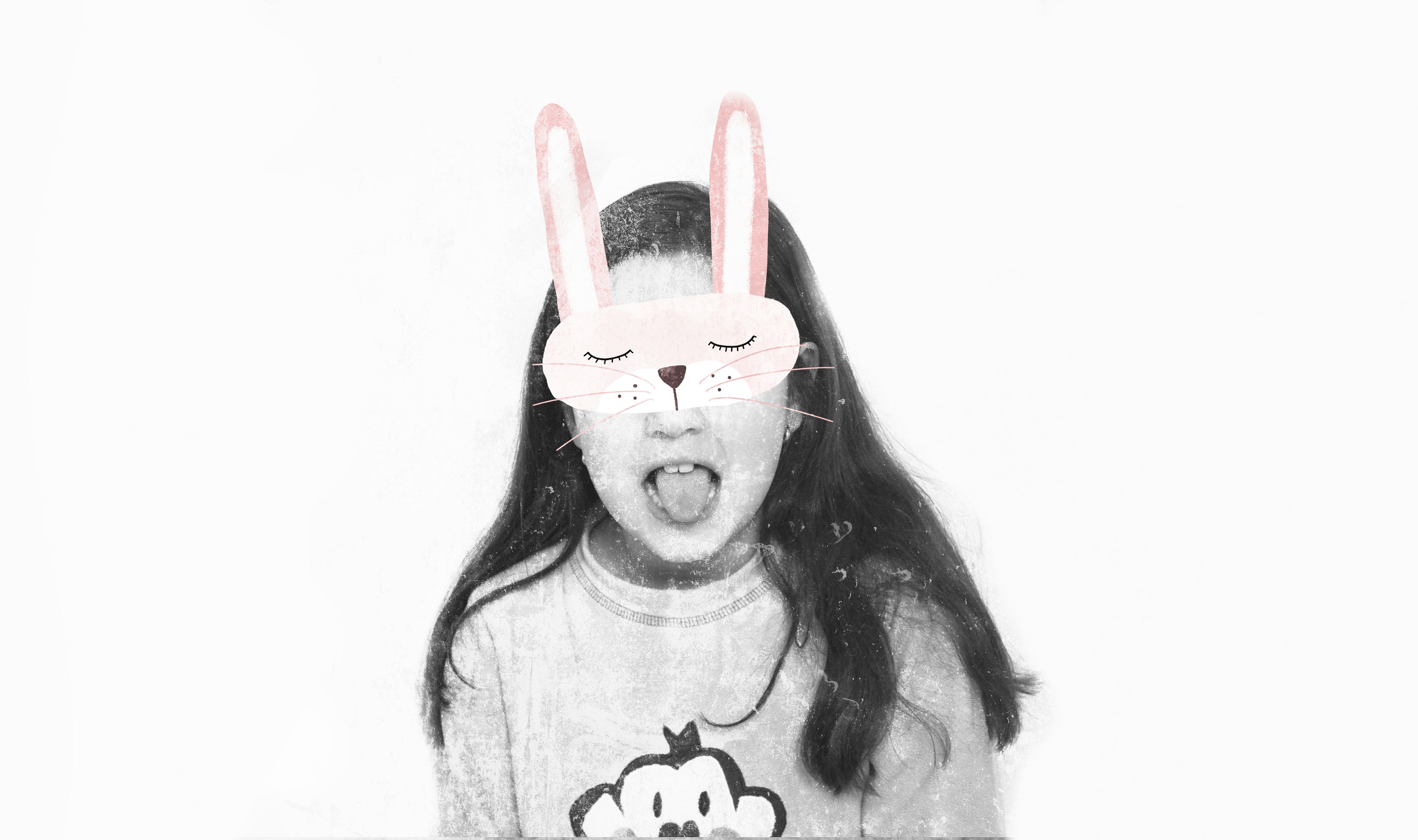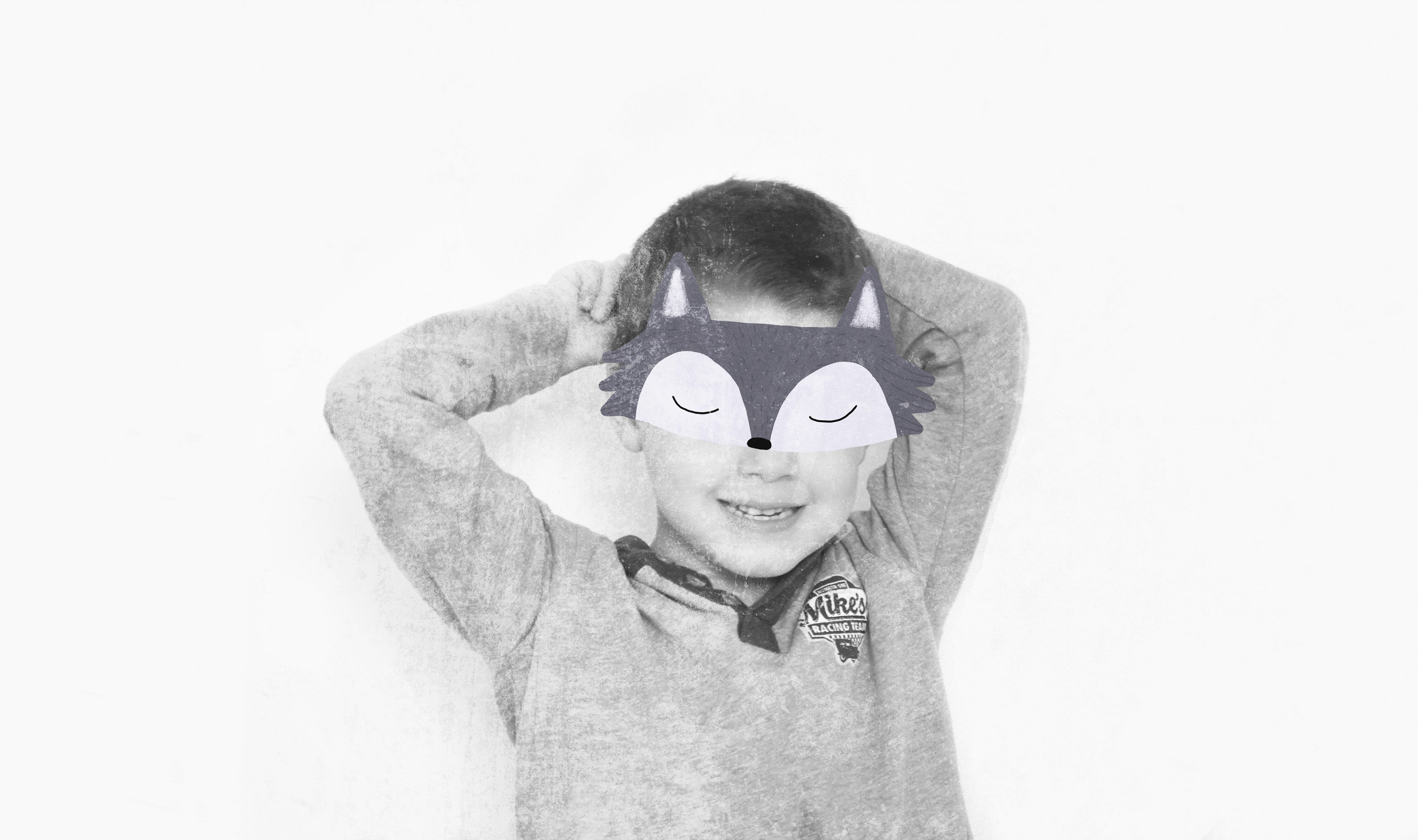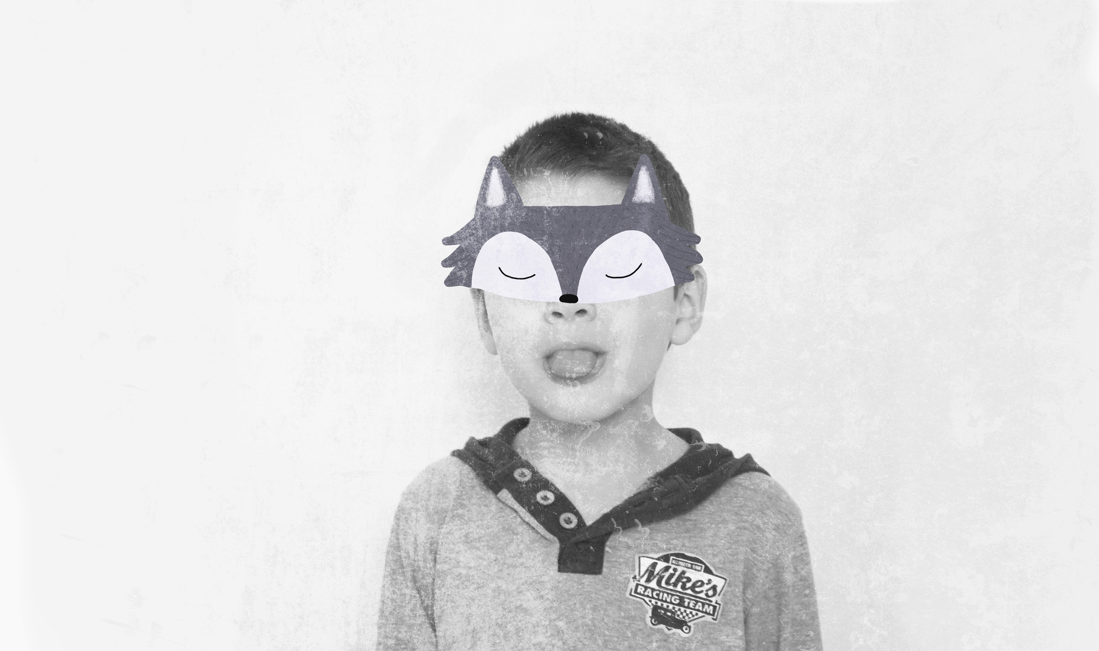 A series of family portraits intervened with illustrated masks.