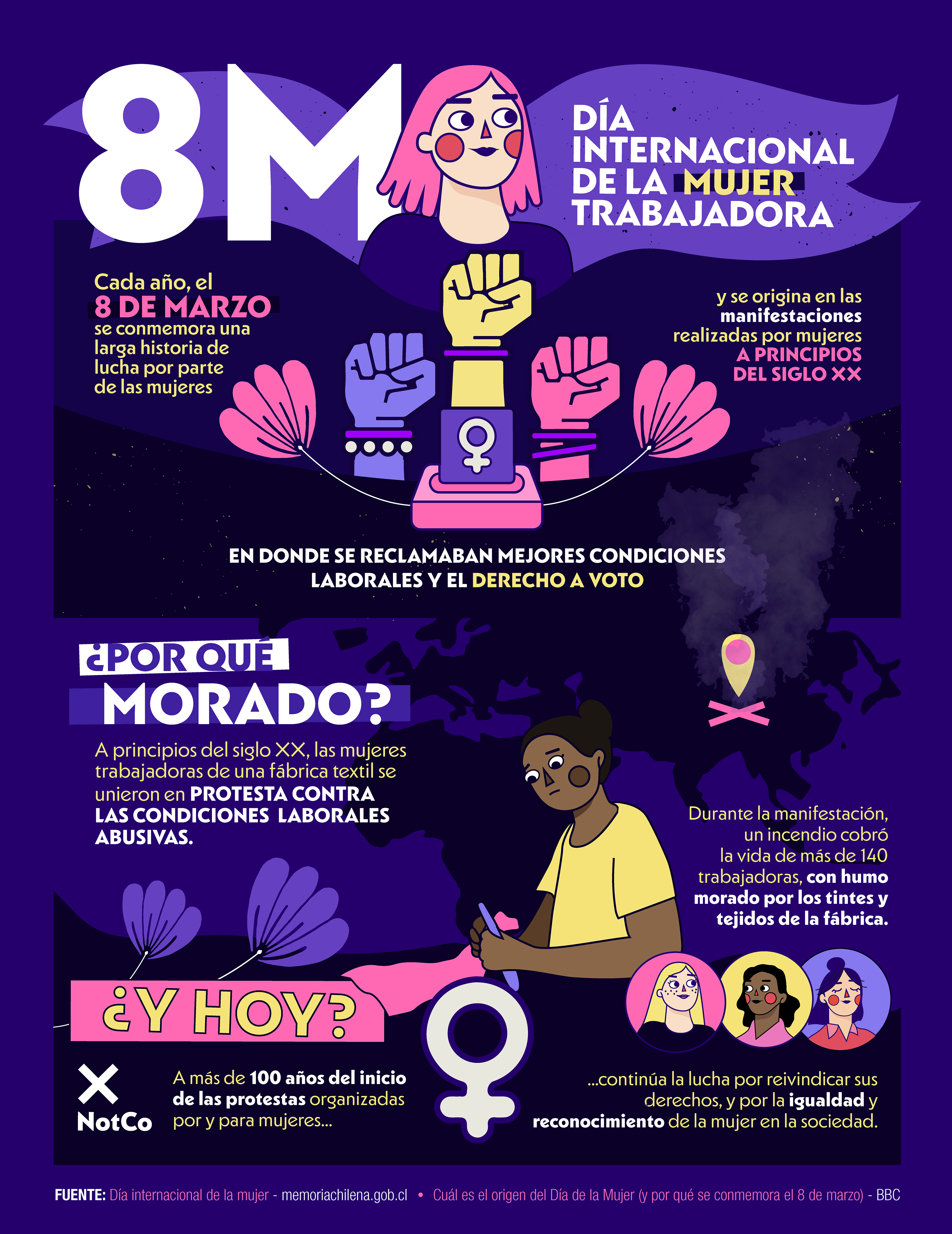 For NotCo, I created a full infographic in commemoration of International Women’s Day (8M), aiming to communicate the historical context and significance of the date in a clear, accessible, and visually engaging way.